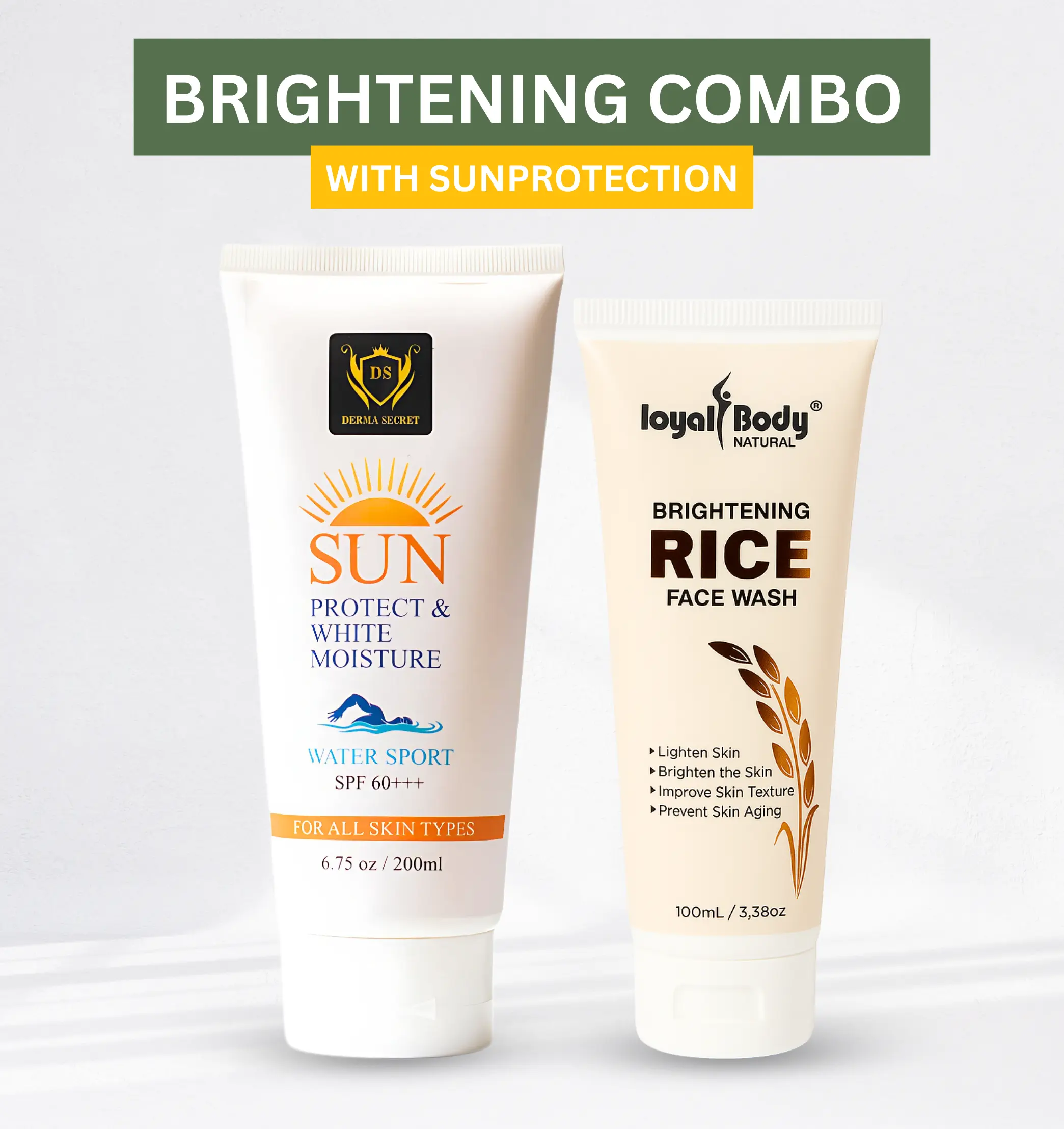 Experience the power of natural skincare with our Brightening Rice Facewash & SPF 60 Sunblock Comboβthe perfect daily duo for radiant, protected skin.